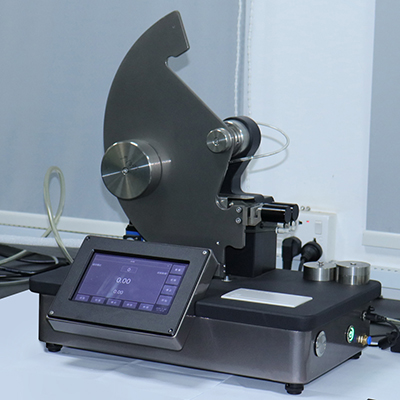 将摆锤提升至规定高度(初始角27.5°±0.5°),使其具备一定的势能;当摆锤自由下摆时,利用其自身贮存的能量将具有规定预切口的一叠试样(通常4层)撕开固定距离;由微电脑控制系统计算出撕裂试样时所消耗的能量,从而得出撕裂试样所需的力值。